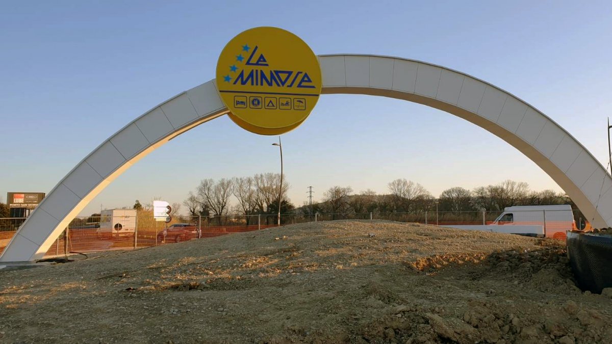 Caratterizzata da una struttura portante reticolare tridimensionale a sezione variabile in acciaio zincato e tamponata poi con pannelliAlucobond, questa opera artistica si trova posizionata sopra una rotonda stradale.