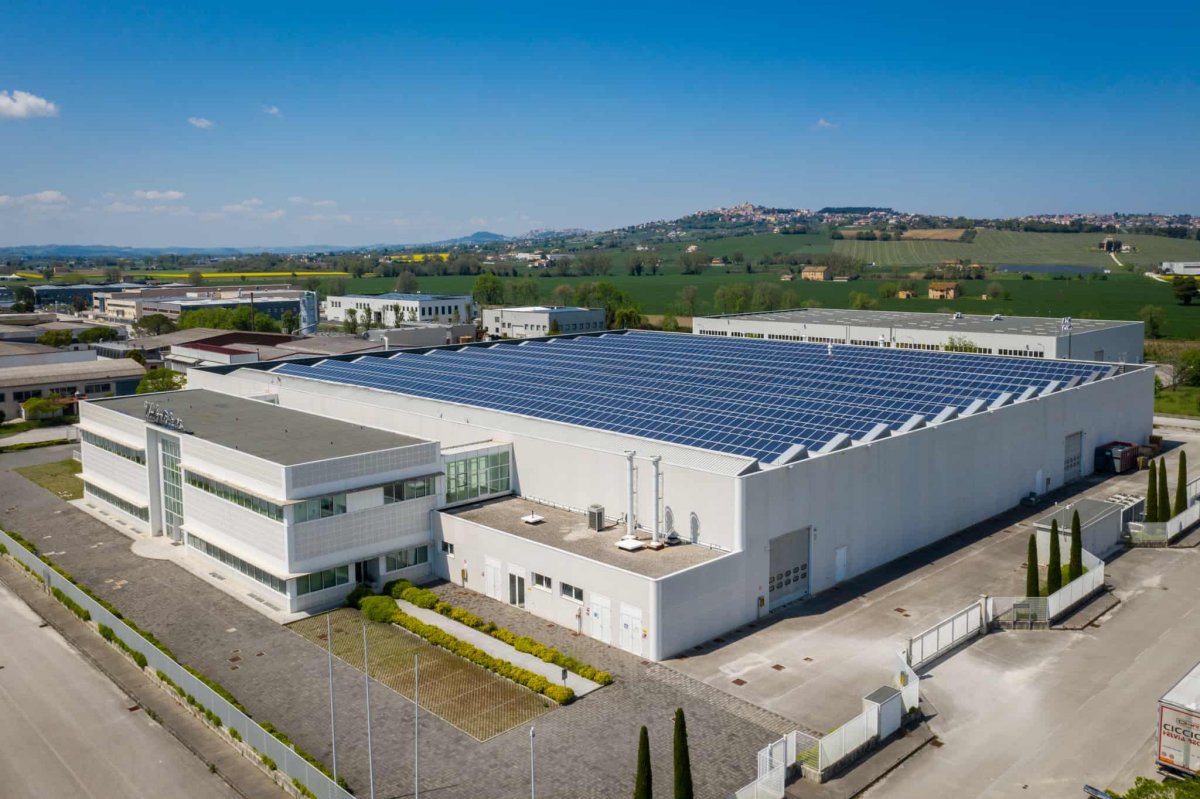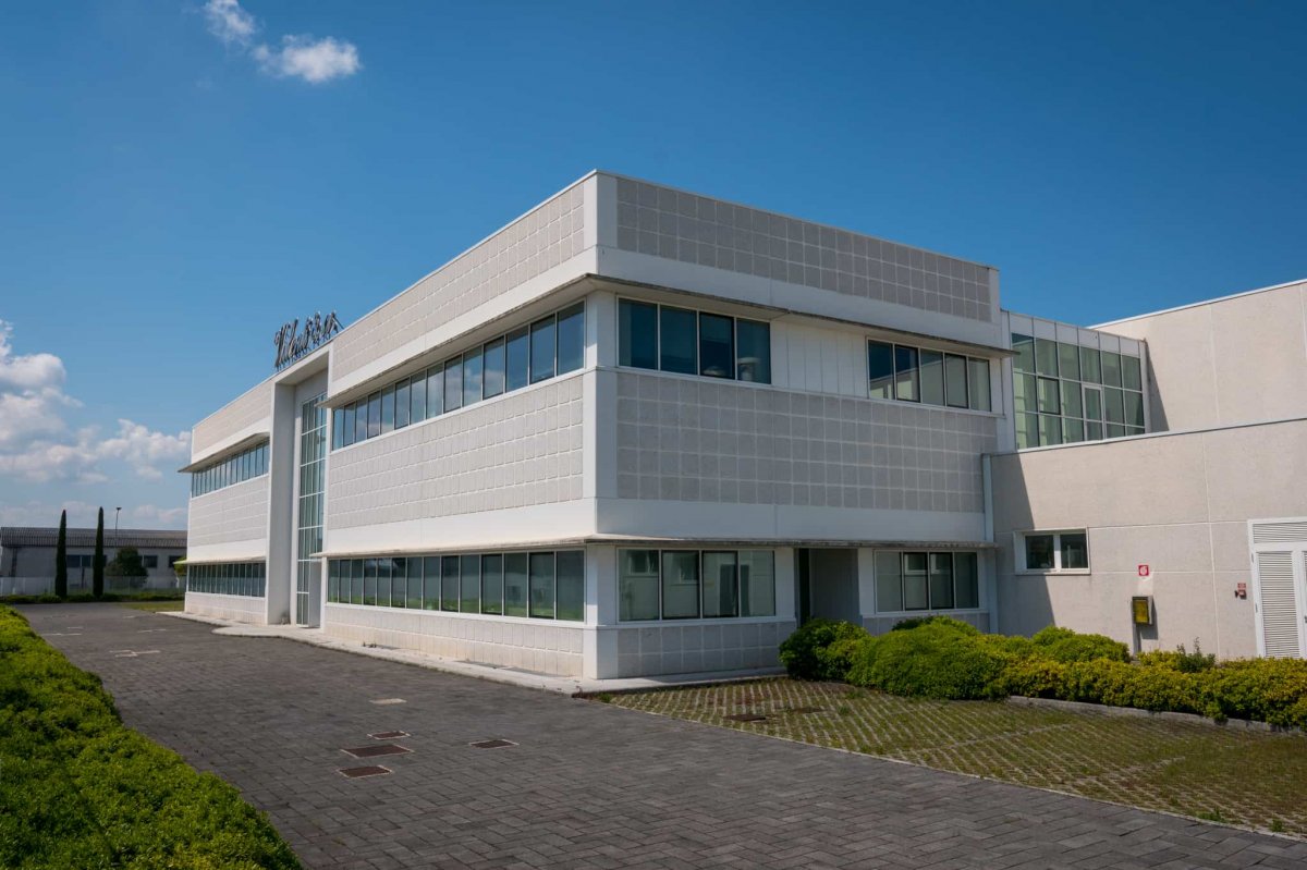 Sede del polo produttivo e logistico, la struttura ha un involucro molto semplice e pulito, prevalentemente di colore bianco, sulla quale spiccano gli infissi in alluminio e vetro presenti nella parte anteriore e nella zona dell'ingresso, caratterizzato da una facciata continua centrale.