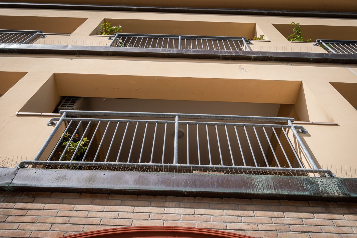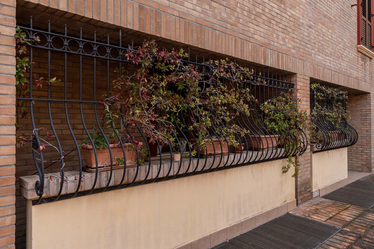 All'esterno assume, nel complesso, un carattere piuttosto rustico, grazie ai mattoni facciavista, agli infissi in alluminio con finitura finto legno e ai pannelli dei portoni sezionali che assumono la medesima colorazione.