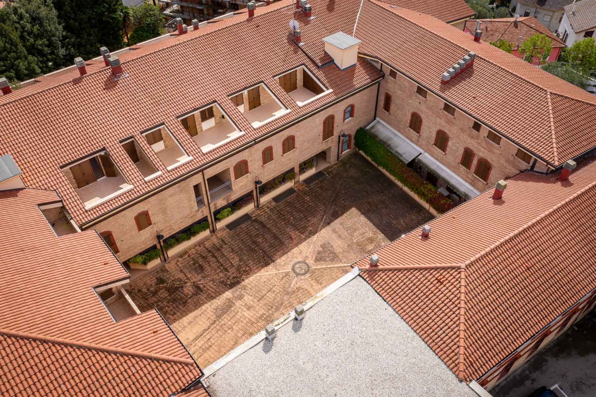 Situato nel cuore della città fidardense, il complesso sorge sopra il terreno che una volta ospitava la vecchia fabbrica di produzione delle fisarmoniche, segno contraddistintivo di questa città.