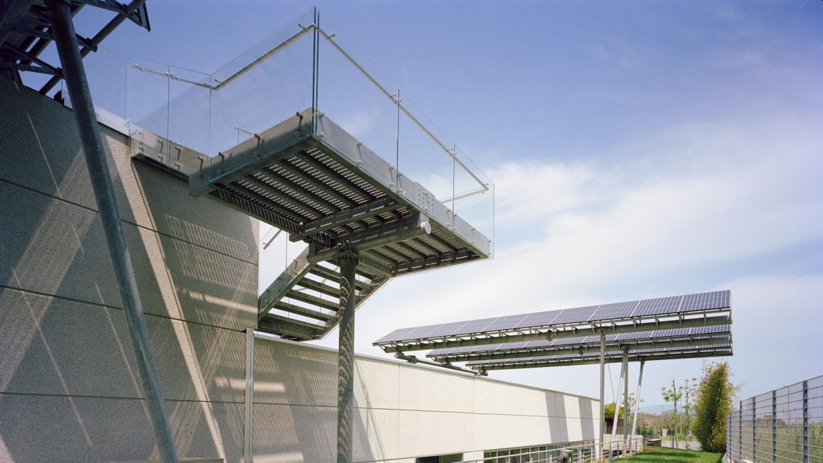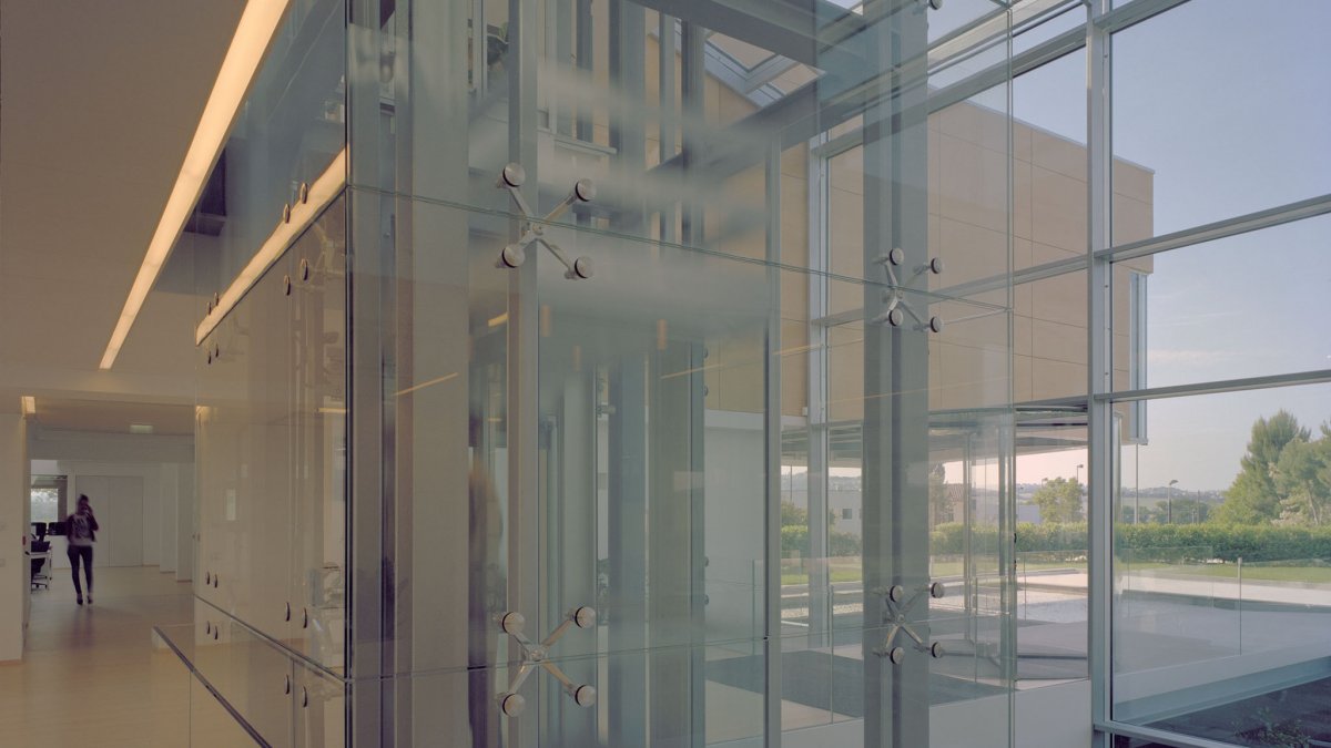 Vengono qui messi in evidenza alcuni significativi dettagli della sede della Rainbow. Vetro e acciaio inox combinati insieme creano la giusta eleganza attribuendo alla struttura l'importanza che le compete.
