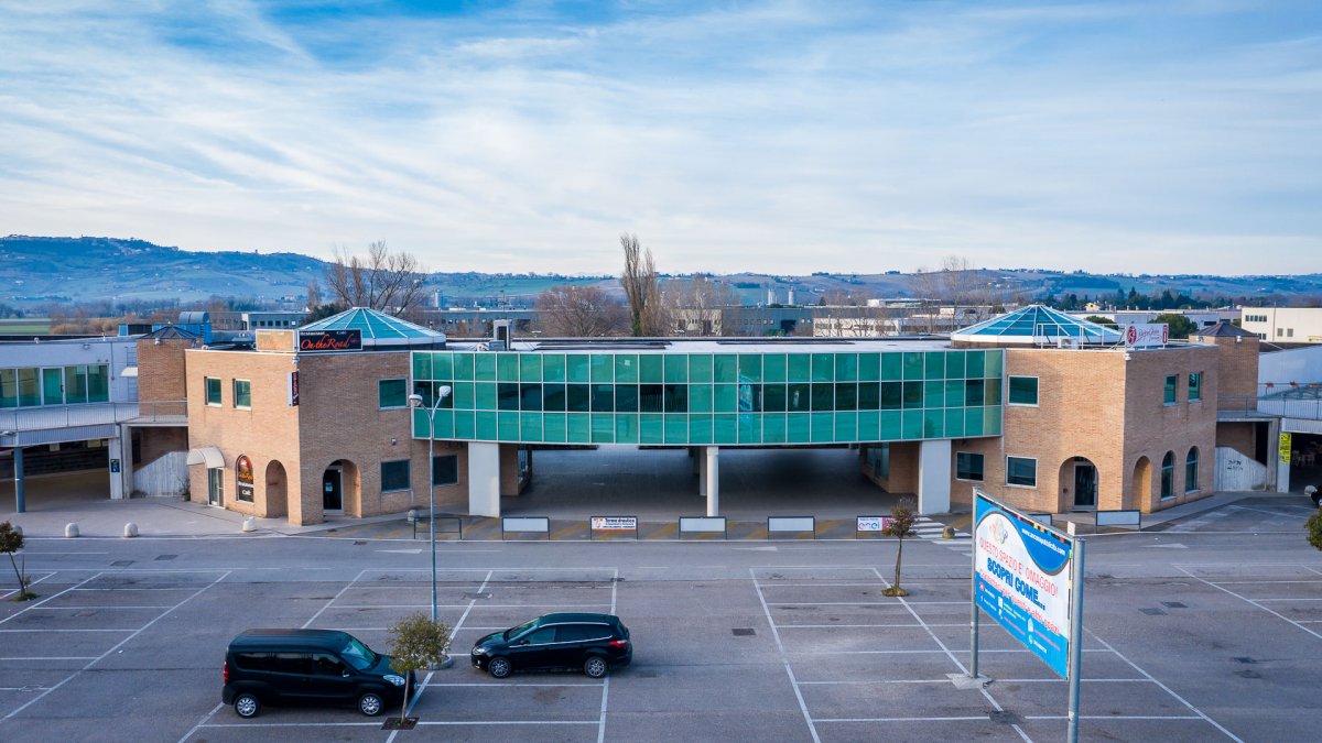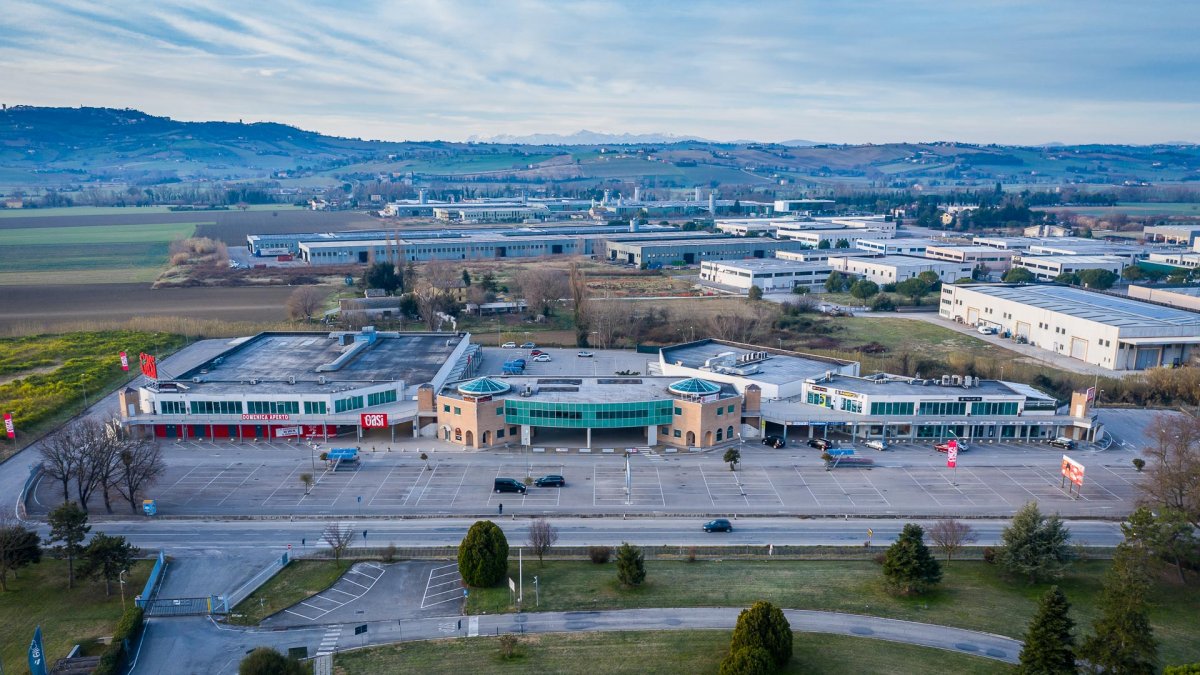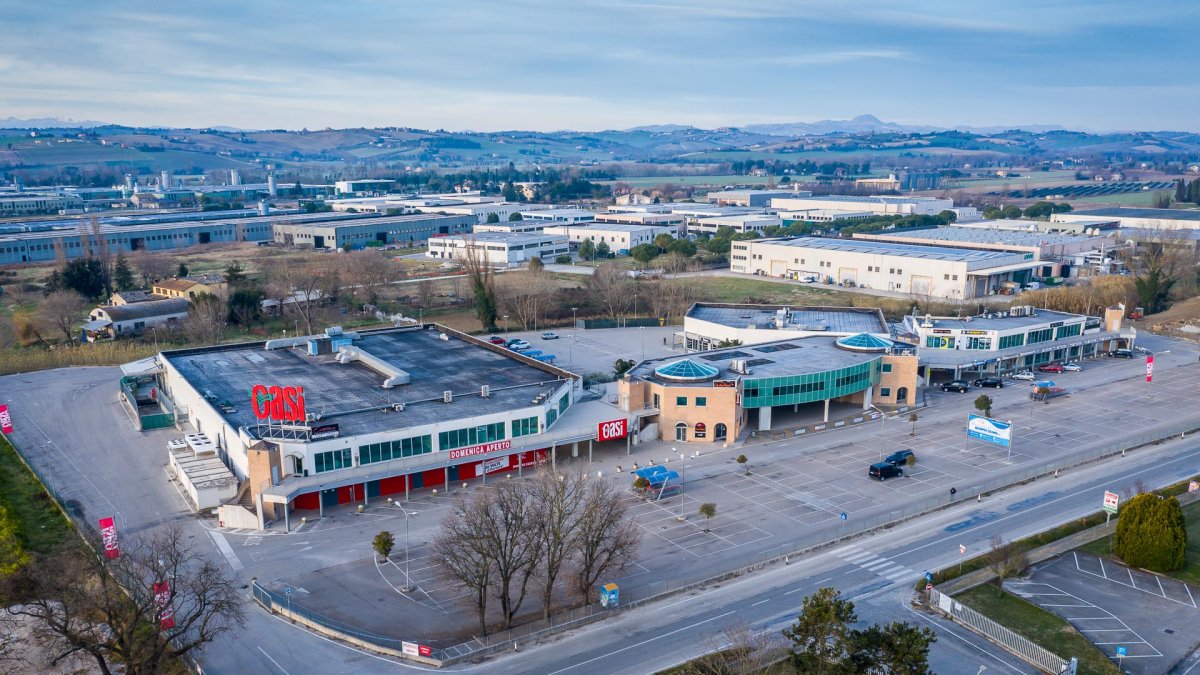 Situato nel cuore produttivo della città di Castelfidardo (AN), adiacente alla strada provinciale Jesina, sorge una serie di edifici destinati al settore commerciale. La peculiarità di questo replica omega complesso sta proprio nella disomogeneità tra le varie parti che lo compongono, la quale origina una realtà diversa ma unita.
