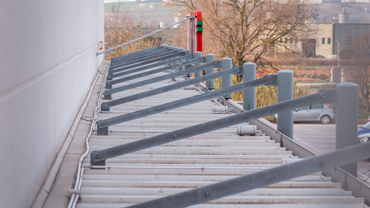 La prima cosa che si nota guardandolo dall'esterno è senza dubbio l'enorme vetrata semicircolare in alluminio posta al secondo piano, con in copertura due strutture piramidali a base circolare, sempre in alluminio e vetro, che permettono di illuminare gli ambienti interni.